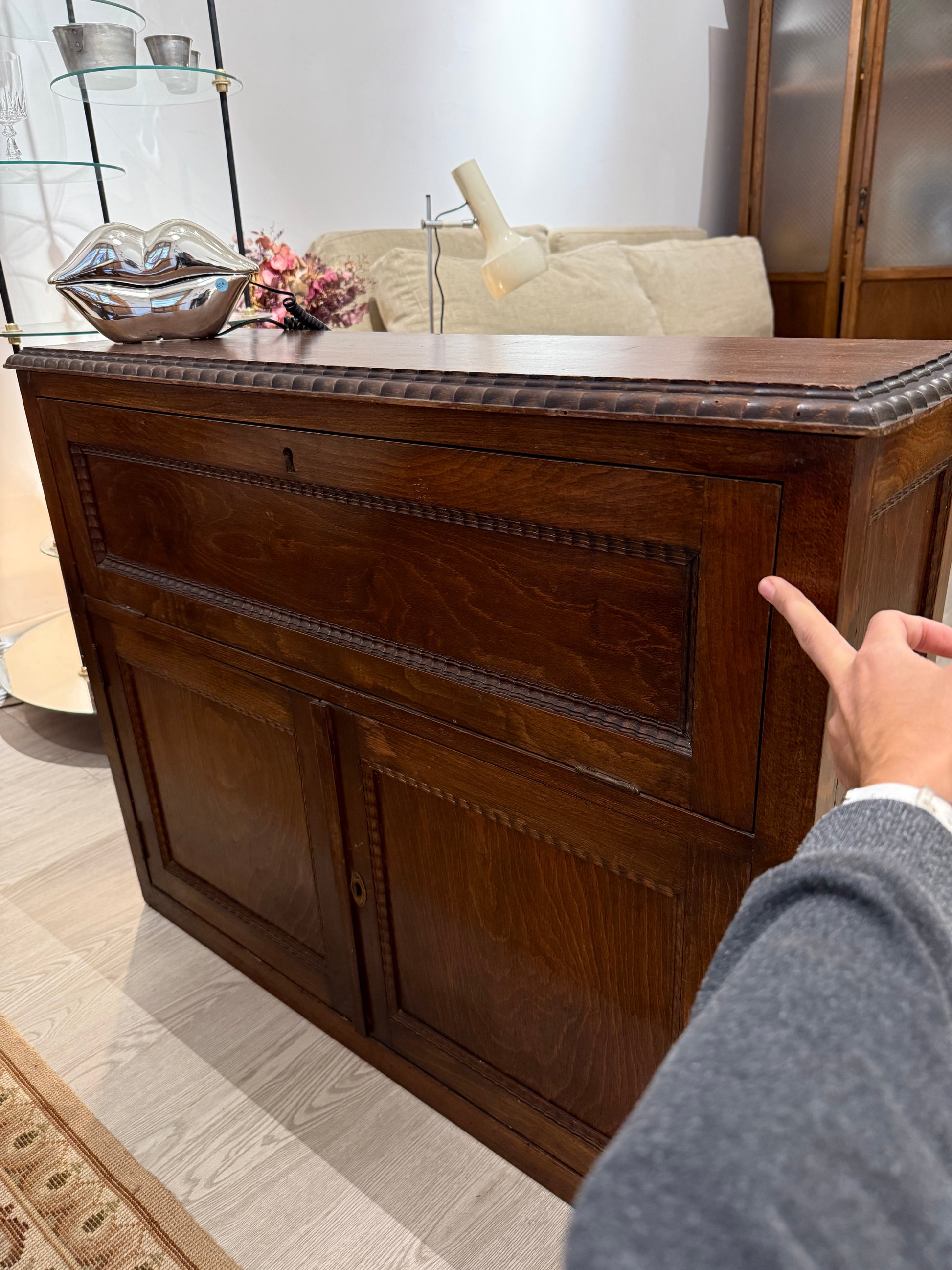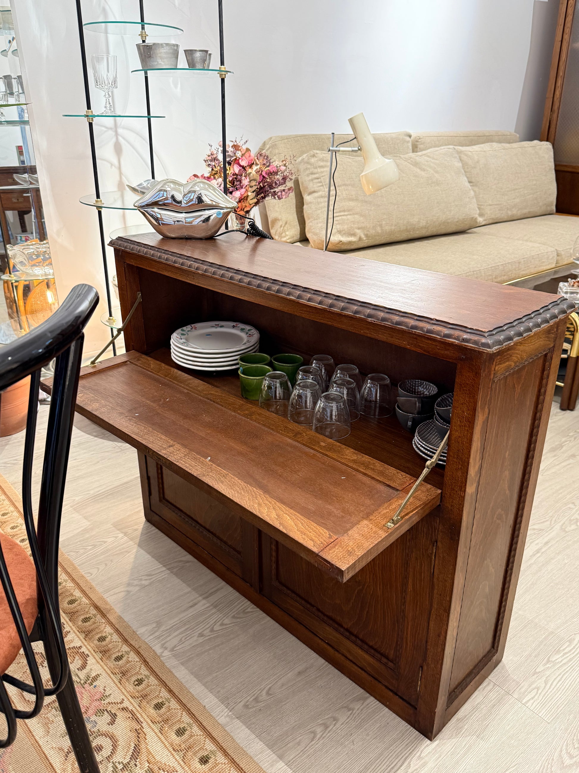 Armariet estil bar, estret de fusta de roure tenyida fosca.